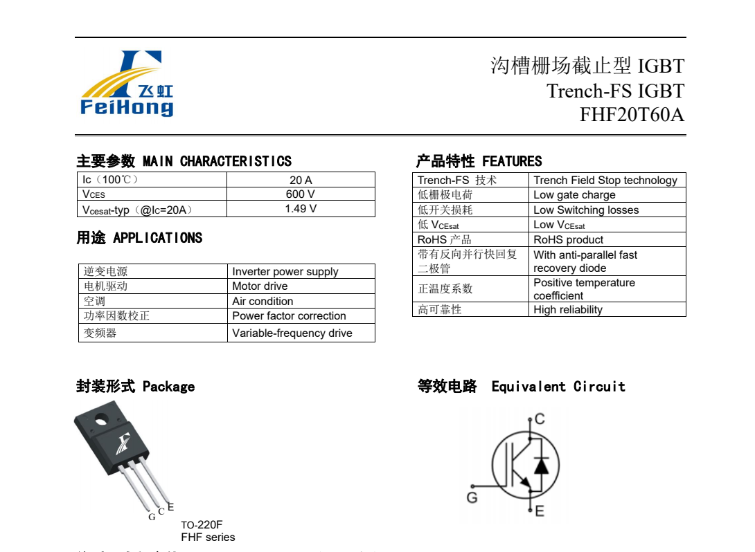 飛虹半導(dǎo)體逆勢發(fā)布:國產(chǎn)IGBT單管60T65A、75T65A、20T60A強勢來襲! 2023-04-03